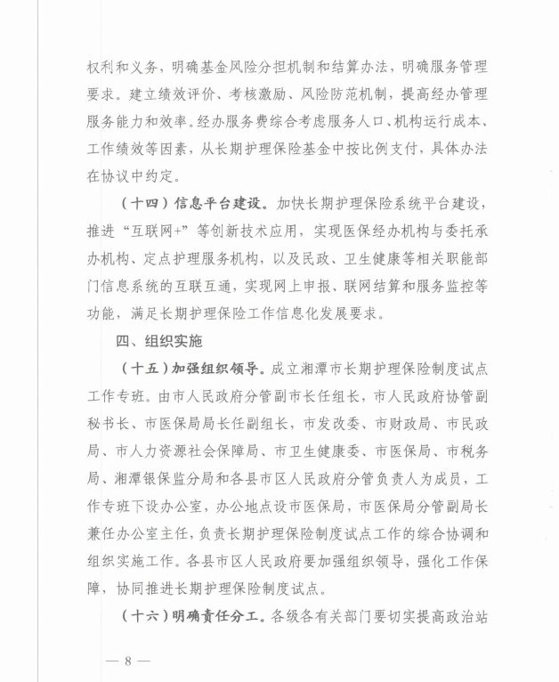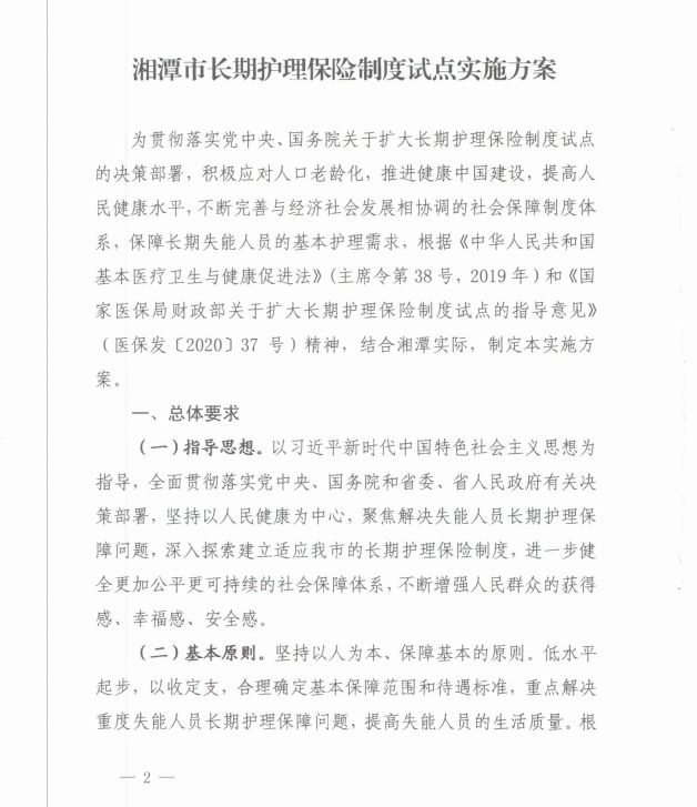 潭政辦發(fā)〔2020〕33號(hào)湘潭市人民政府辦公室關(guān)于印發(fā)《湘潭市長(zhǎng)期護(hù)理保險(xiǎn)制度試點(diǎn)實(shí)施方案》的通知