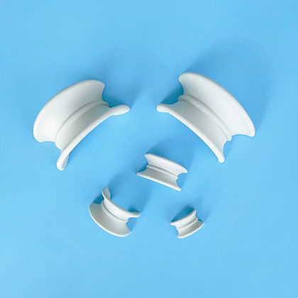 陶瓷矩鞍環(huán)屬于陶瓷填料的一種型號(hào),它采用連續(xù)擠出的工藝進(jìn)行加工,與同種材質(zhì)的拉西環(huán)填料相比,具有通量大、壓降低、效率高等優(yōu)點(diǎn)。比鮑爾環(huán)阻力小、通量大、效率高、填料強(qiáng)度和剛性較好,是目前應(yīng)用廣的一種散堆填料。