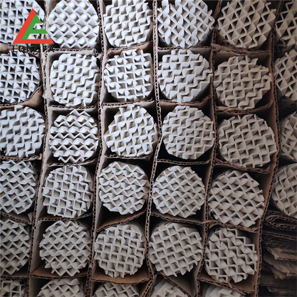 陶瓷規(guī)整填料是一種在培內(nèi)以均勻幾何圖形排布,整齊堆砌的培填料。規(guī)整填料主要是取代塔內(nèi)散堆填料,解決阻力大、比表面積小,傳質(zhì)效能差、易破碎等突出問題。它規(guī)定了氣液流路.改善了淘流、壁流和潤濕性能.降低了阻力,同時(shí)提供更多的氣液接觸面積從而提高了傳質(zhì),傳熱效果??蓮V泛用于煤氣洗滌塔.焦化洗滌,洗苯、洗氨培、化肥熱氣飽和、脫硫酸、硫酸干燥、吸收塔等。陶瓷波紋規(guī)整填料是用硬質(zhì)瓷構(gòu)成,主要成分粘土、石英、長石等經(jīng)特殊烘燒而成。其形成是由許多具有相同幾何形狀的單元體波紋片相互平行,叉疊加組成。
